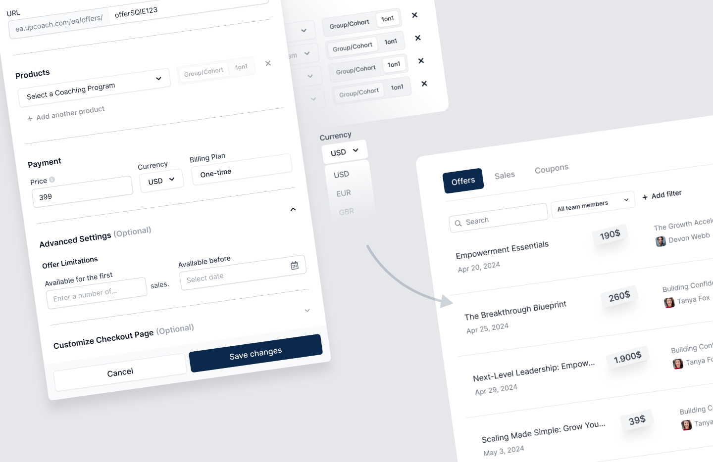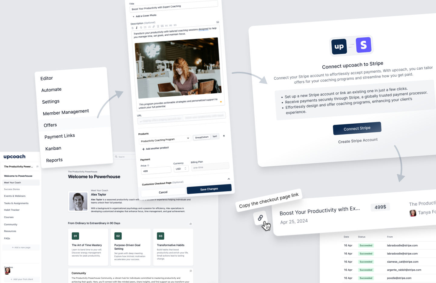 easier. With upcoach’s Online Payments and Offer Pages, you can